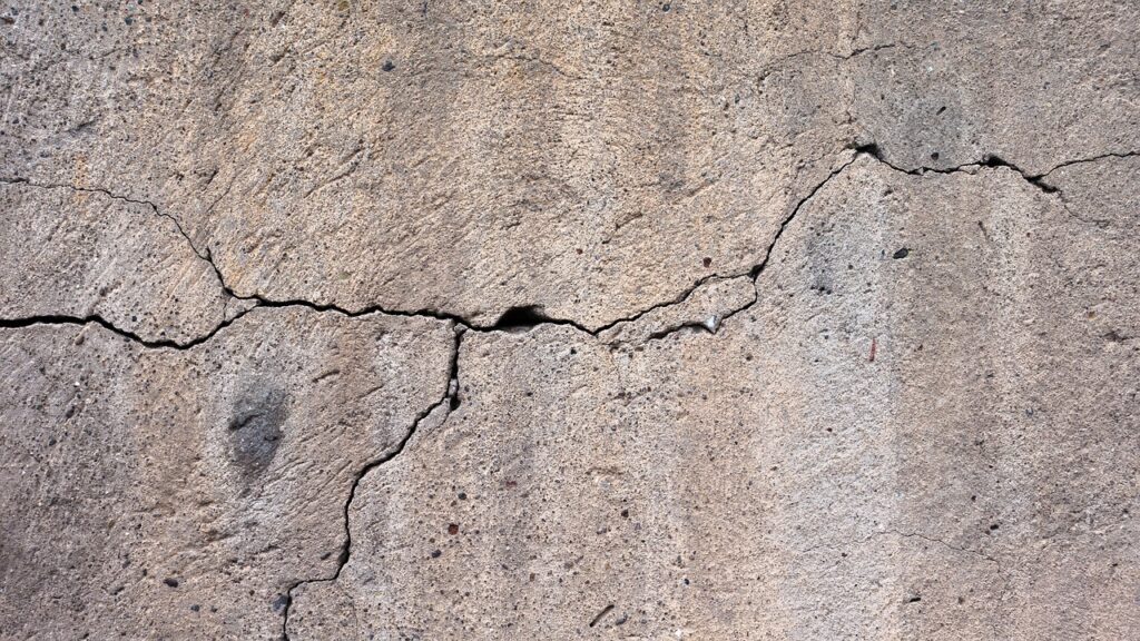 隣地とのコンクリート塀に、地震で入った割れやヒビがある。