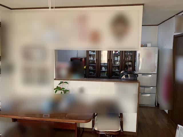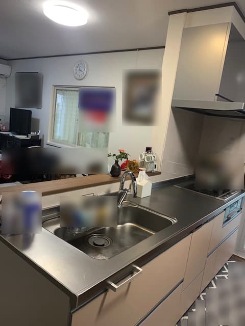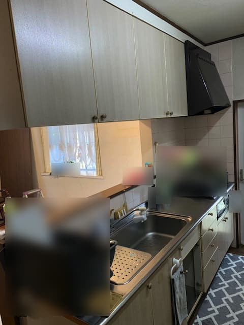 以前は、吊り戸棚の圧迫感、扉の破損、食器乾燥機の場所取り、外付け浄水器の不衛生感、レンジフードの汚れが重なっていました。