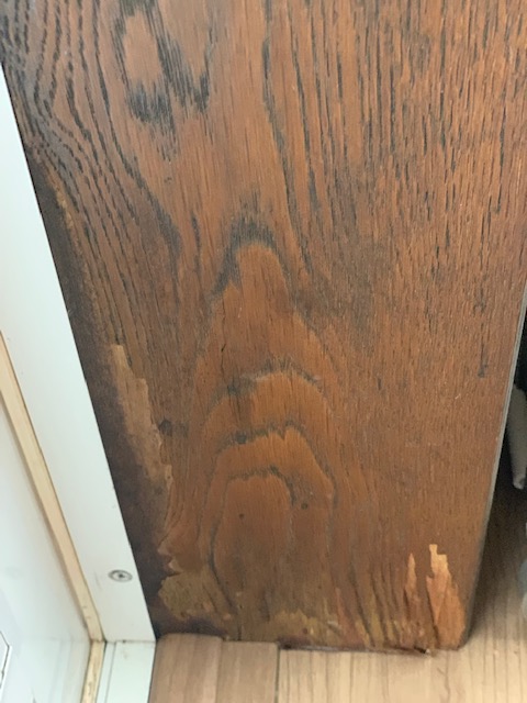 勝手口の柱が結露で傷み、見た目が悪くなっていた
