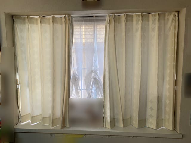 ❷ 出窓が古く、すき間風でカーテンが揺れるほど寒い