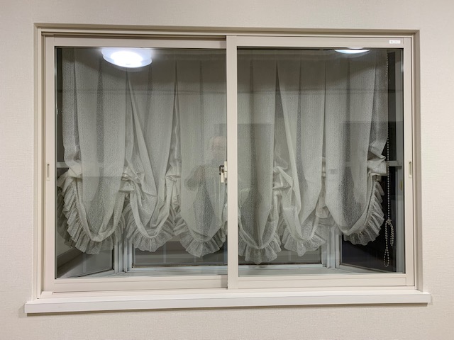 古い出窓は、強風の日にレースも目隠しカーテンも揺れるほどでした。