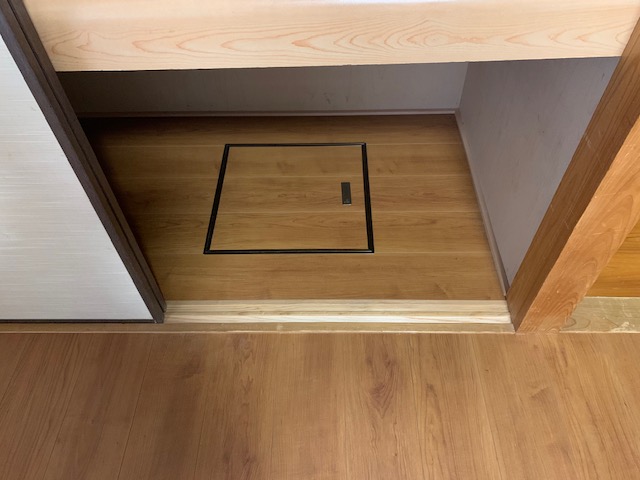 また、床をフローリングにしたことで、点検のための 床点検口 を押し入れに新設することになりました。