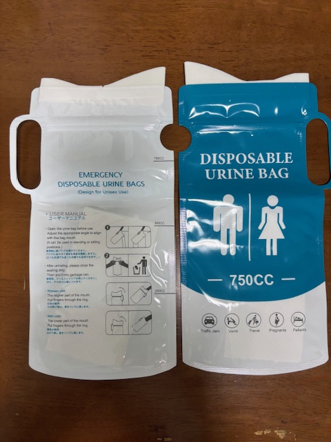 次にご紹介するのは、**携帯用使い捨てトイレ(尿袋)**です。