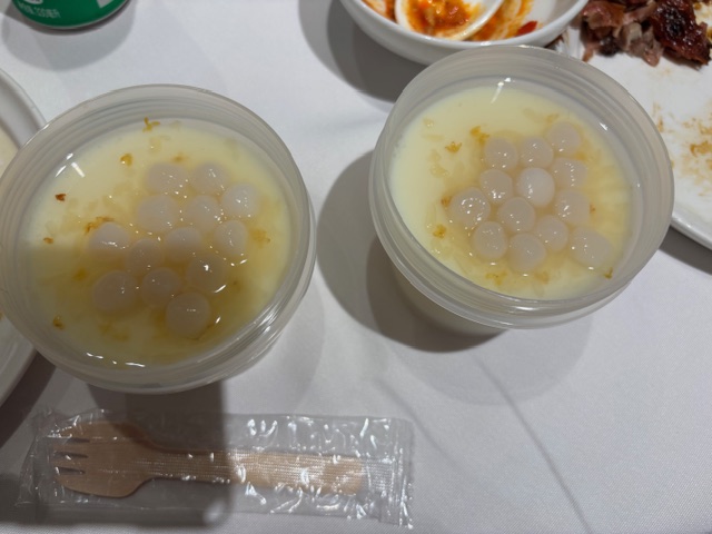 日本とは大違いです。タピオカ風の澱粉が浮かんでおり、薄黄色いスープのような感じで、日本ほど甘くなくてあっさり味でした。若い人は物足りないでしょうが、私たちシニアはいい感じでした。本場ものをいただき、北京のリアル感に感動ひとしおでした。