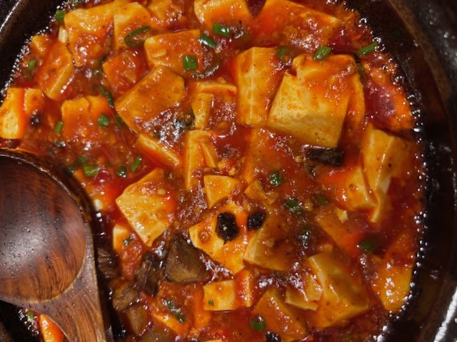 • 麻婆豆腐:ピリ辛で花椒の痺れが効いた四川の定番。豆腐は滑らかで辛さは調整可能。豆腐を炒めた挽肉と豆板醤、花椒で味付け。約¥800〜1,000相当。