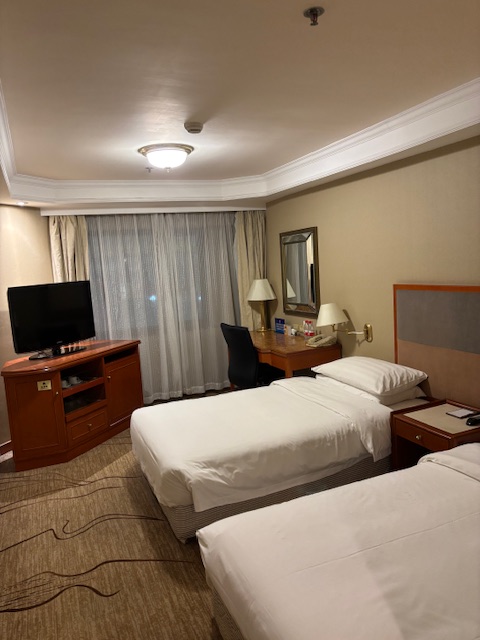 ホテルに着いて鍵を受け取り、エレベーターで7階へ上がり、部屋に荷物を置きました。