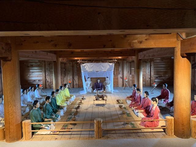 「倉と市」では、国内外の品々が取り引きされていた高床倉庫群を眺め、