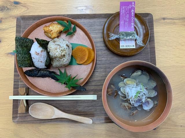 有明産あさりと赤米のおにぎりを使った「古代貝汁御膳」は、現代人の私たちにも「絶品!」と感じる味わいでした。
