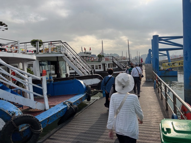 バスで10分ほど走り、港の桟橋に着きました。多くの観光船が停泊しており、このような光景は初めて見ました。大小のチャーター船、宿泊できる大型船が「出船、入り船、別れ船」とごった返しており、よく事故が起きないなと思うほどでした。