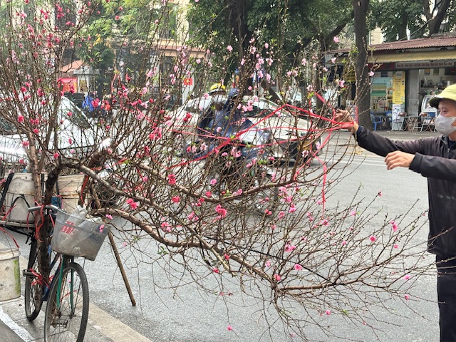 自転車で紅梅を売っているおじさんに出会いました。ベトナムの正月は家の中に紅梅を飾って迎えるそうです。ちょうど元日に満開になるように育てるそうです。このおじさんはその信用があるので予約でいっぱいだそうです。自転車の数倍もある梅を運ぶおじさんの活力に驚嘆しました。旧市街は活気に満ち溢れ、歩道でもどこでも入ってくるバイクの多さに驚きました。
