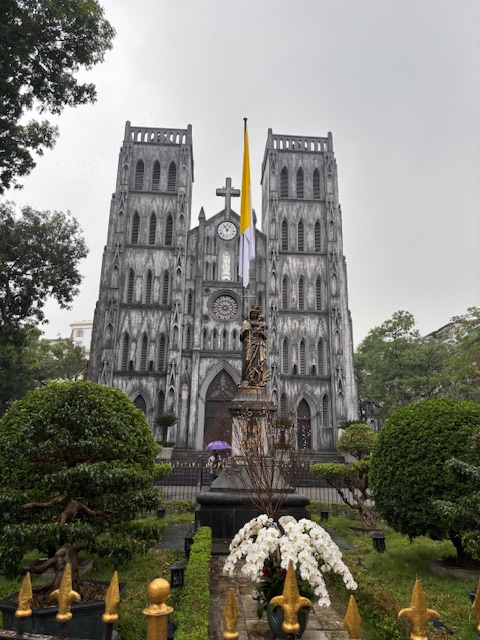 ハノイ大教会の正式名称は「セントジョセフ教会」というそうです。ハノイ市の最古の教会で1886年に建築されました。パリの「ノートルダム大聖堂」を模した「ネオゴシック様式」の重厚な外観が歴史の深さを感じさせます。