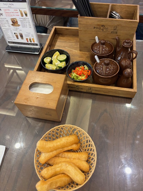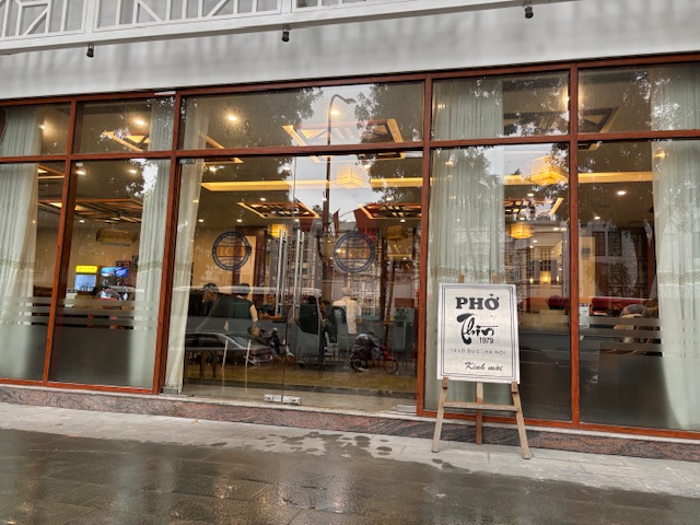 昼食は、ベトナム名物「牛肉フォー」の専門店に案内されました。こちらはハノイでは有数の専門店だそうです。本格的な牛骨スープ、フォー麺、緑の野菜、ニンニクなどが入っています。