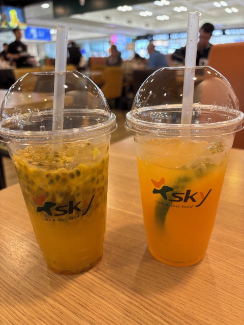 空港では時間の余裕がありましたので、売店を回ったりカフェでジュースを飲みました。オレンジとタピオカジュースを注文し、約1200円支払いました。味はマアマアでした。