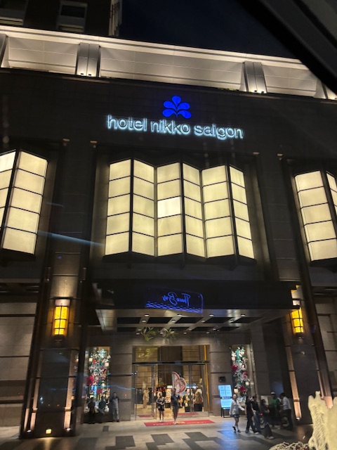 夜の「ホテルニッコーサイゴン」は、ゲートをくぐり正面玄関はライトアップされ、多くの宿泊者で溢れていました。ほとんどが日本人でした。